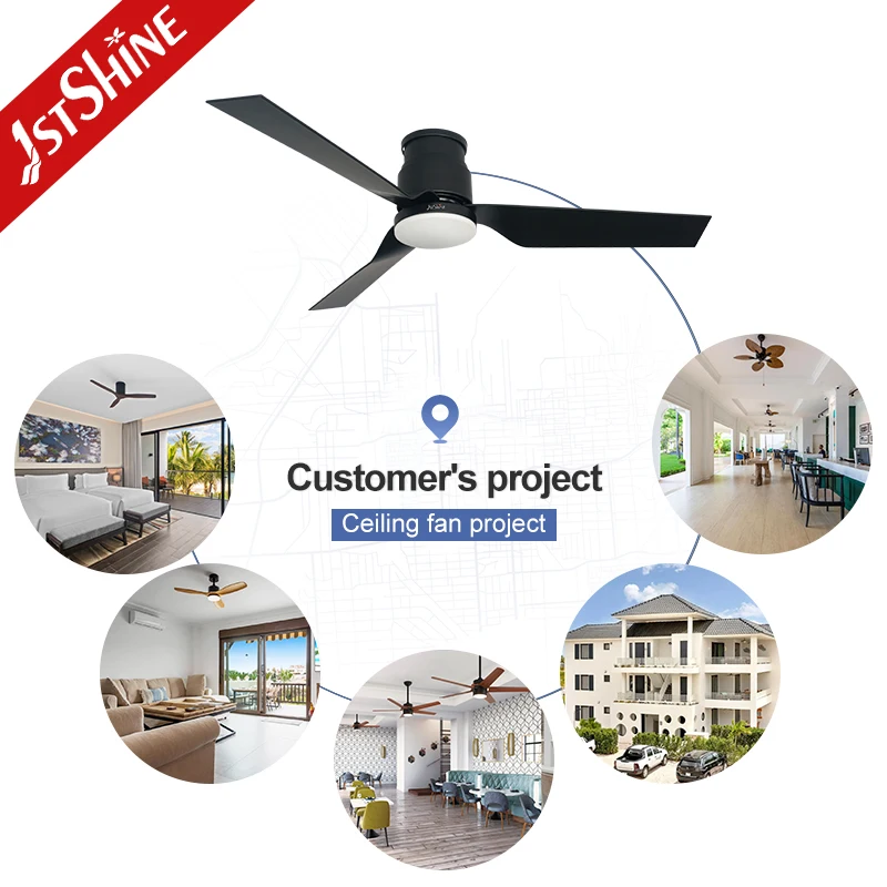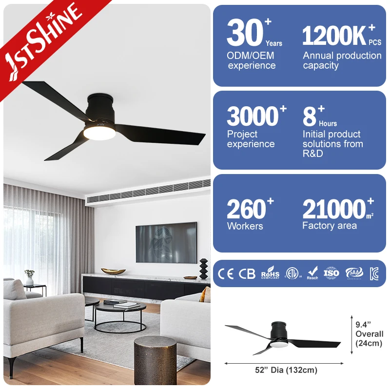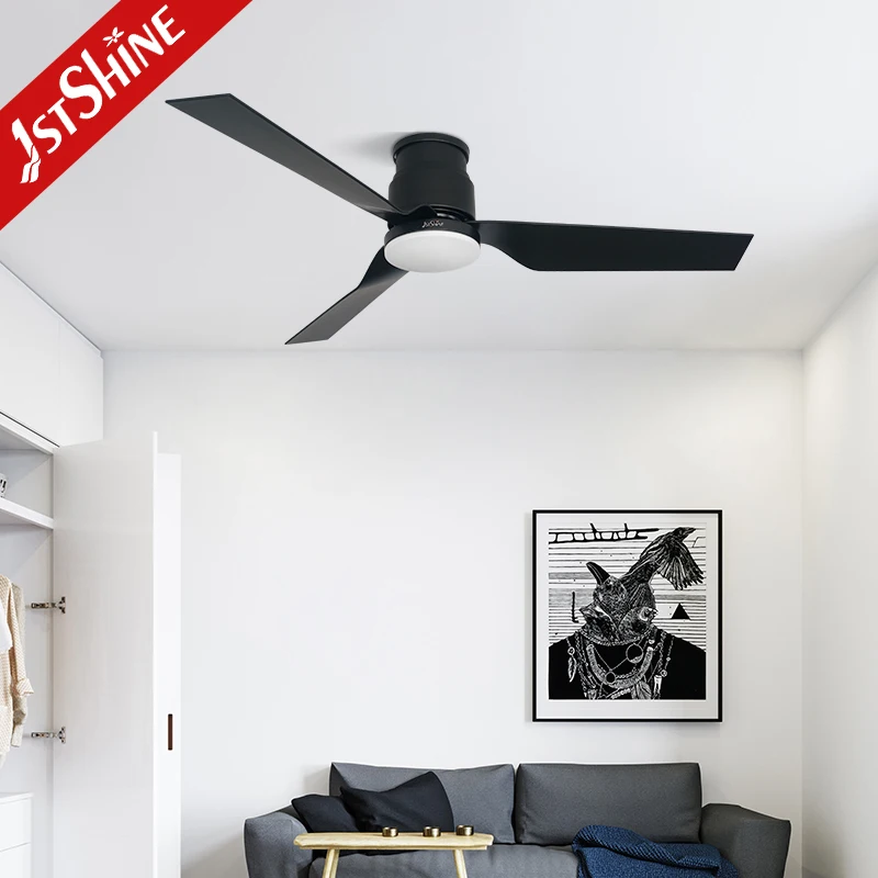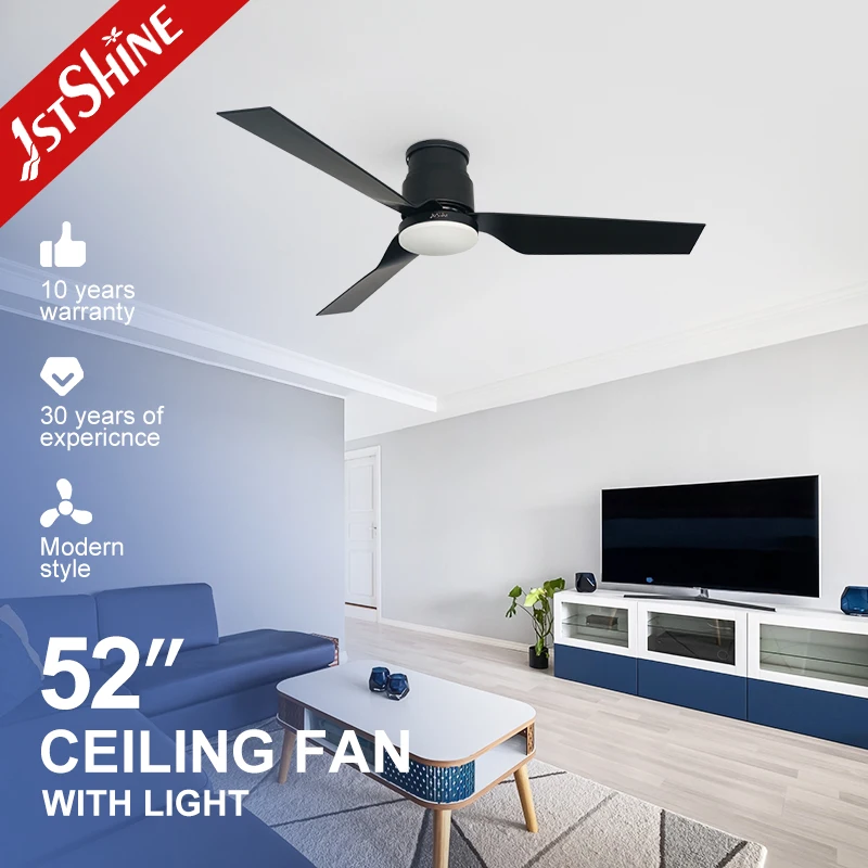 1stshine LED Ceiling Fan for Low Ceiling Black ABS Blades 52 Inches Ceiling Fan with LED Light